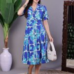 Be the first to review “Women’s Blue Abstract Print Cotton Shirt Dress”